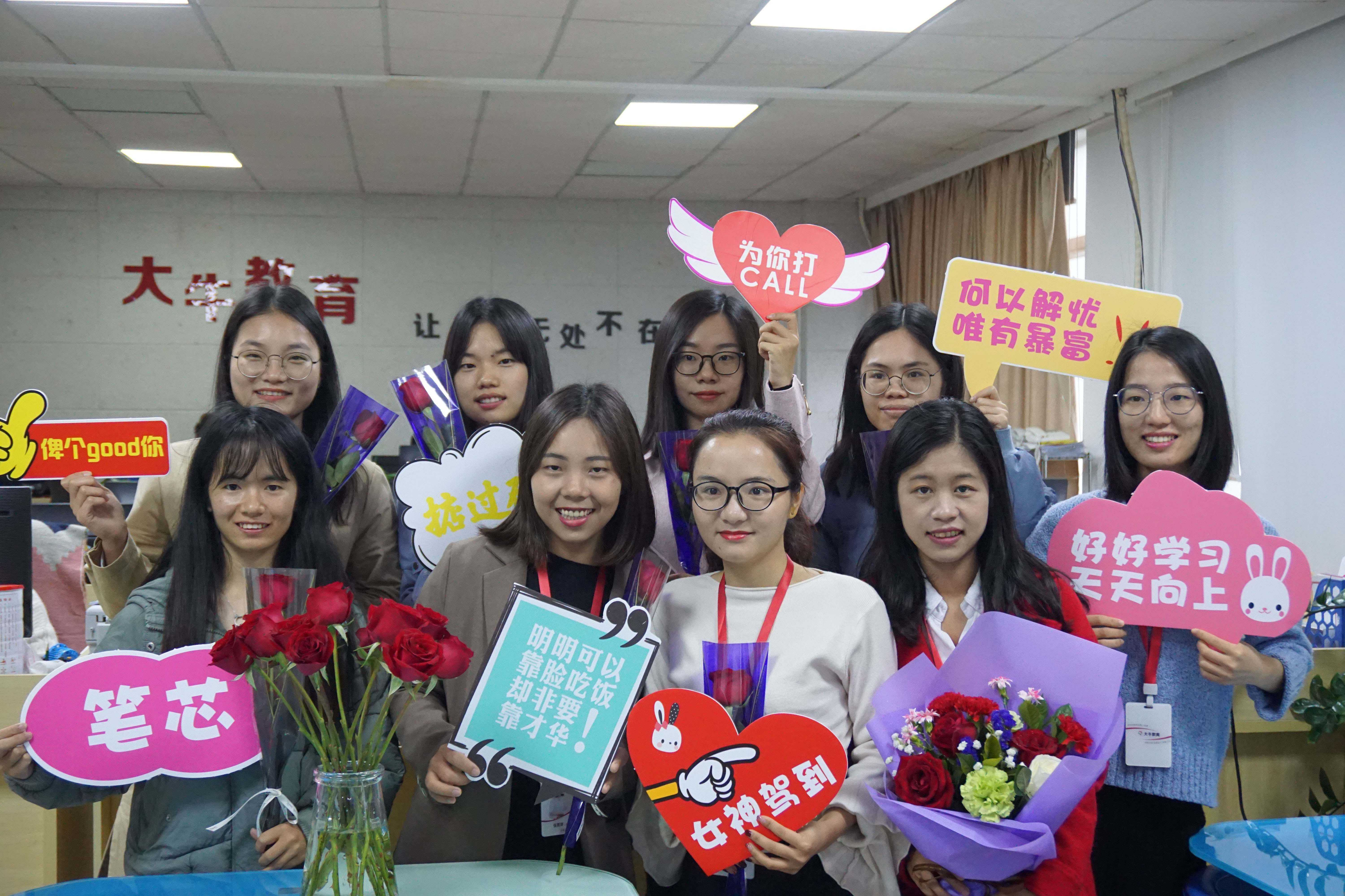 當(dāng)天,天資教育的辦公區(qū)域快要被鮮花和賀卡淹沒了,琳瑯滿目的鮮花讓我們的辦公室充滿了絲絲清香,縈繞在小伙伴們的鼻間;暖心的話語更是讓我們的女神們綻放出迷人的微笑。